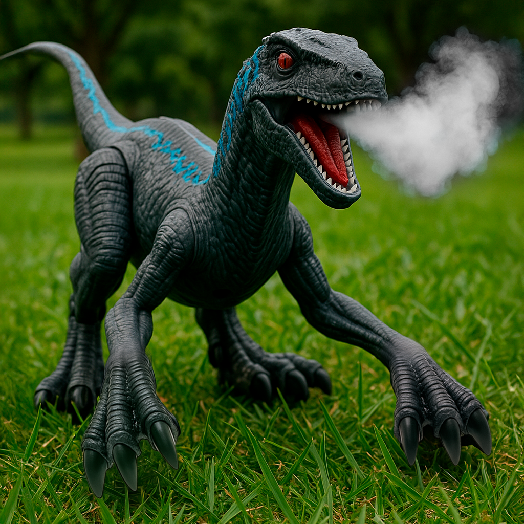 Este Velociraptor es perfecto para la diversión de los mas pequeños, puede moverse hacia adelante o atrás, botar humo y gruñir como si fuera real, juega y cárgalo cuantas veces quieras.